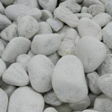 Polar white cobbles are 40-80mm, marble, naturally rounded and tumbled.